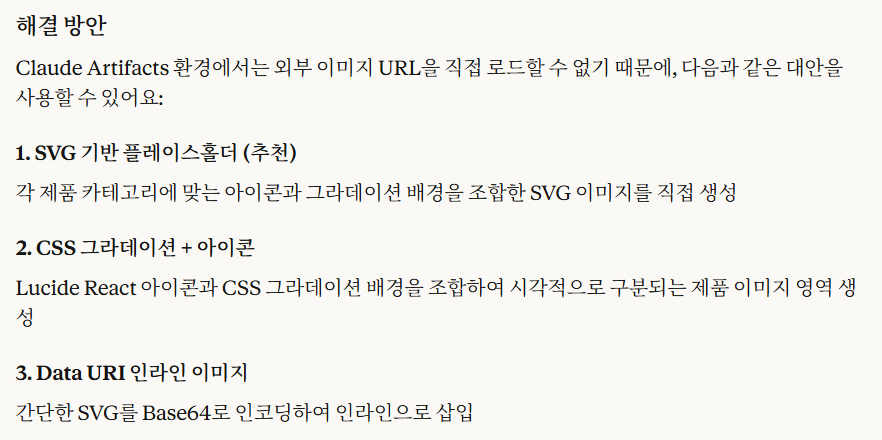 - 정확히는 웹에서 사용하는 클로드 아티팩트에서 이미지를 끌어다 쓸 수 없는 것 같습니다.
