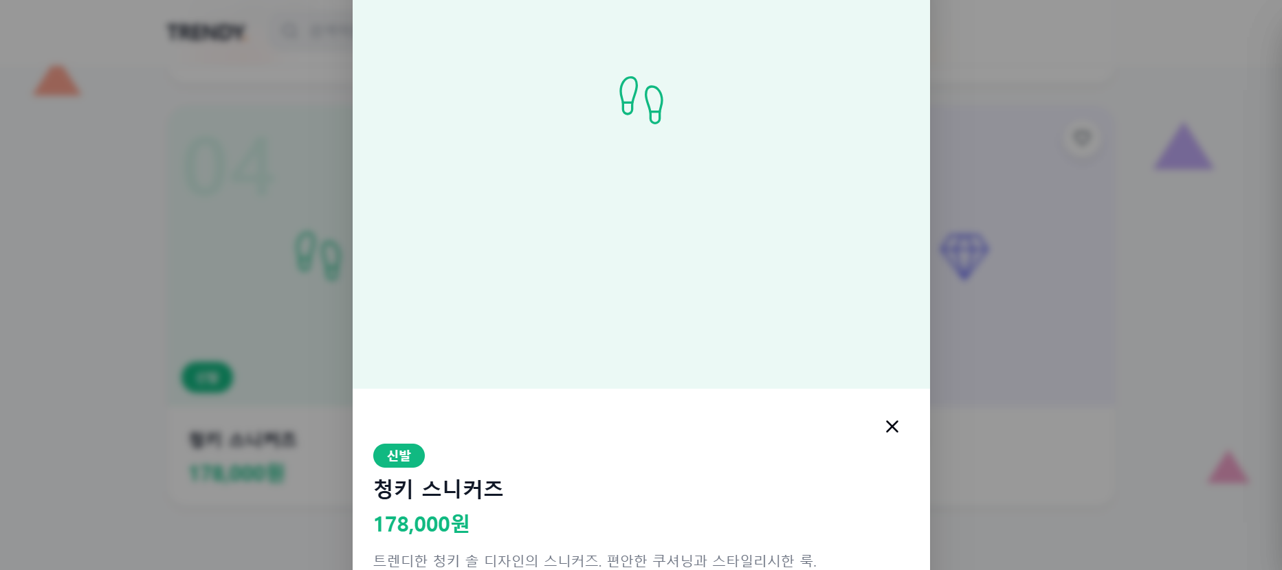 - 그런데 제품을 선택했을 때 팝업되는 카드가 화면에 충분히 담기지 않았어요.
