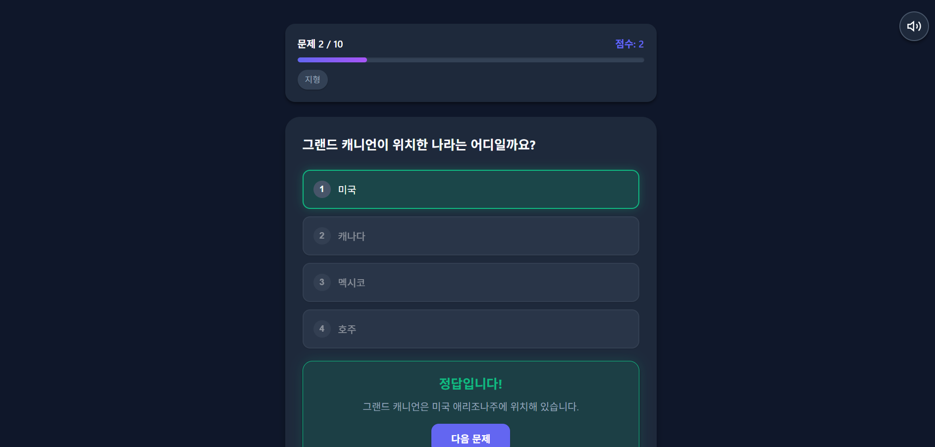 - 키 입력 : 1, 2, 3, 4 키 입력 시 선지 선택
