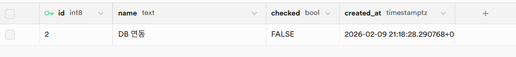 - 이번 앱은 shopping_items라는 테이블에 id, name, checked, created_at 4가지 컬럼 정보를 저장합니다.