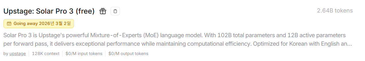 - 이번 프로젝트에서 사용할 AI 모델입니다. 업스테이지의 솔라 프로 3