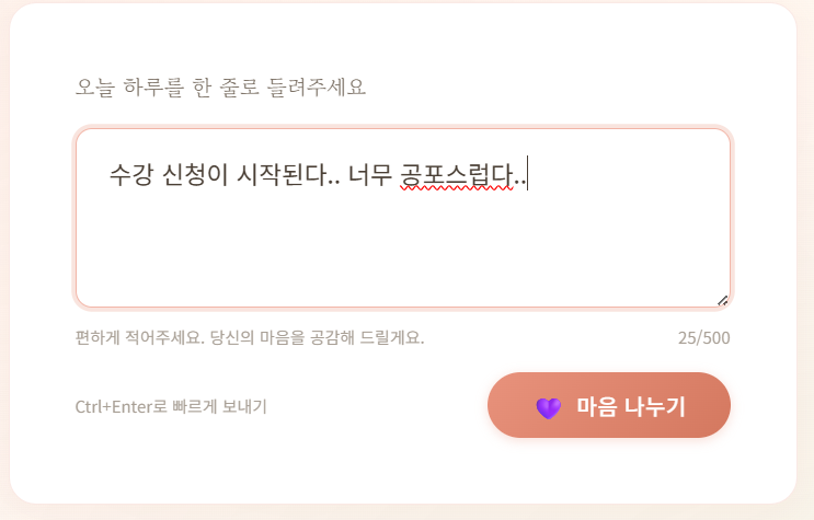 - UI는 이런 식으로 만들어졌고, 이 상태로 마음 나누기 버튼을 눌러보았는데.