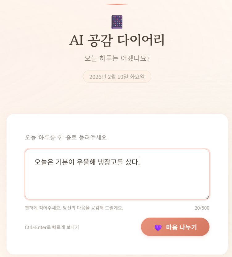 - 간단하게 일기를 작성하면 AI가 나의 감정을 분석하여 결과로 보여줍니다.